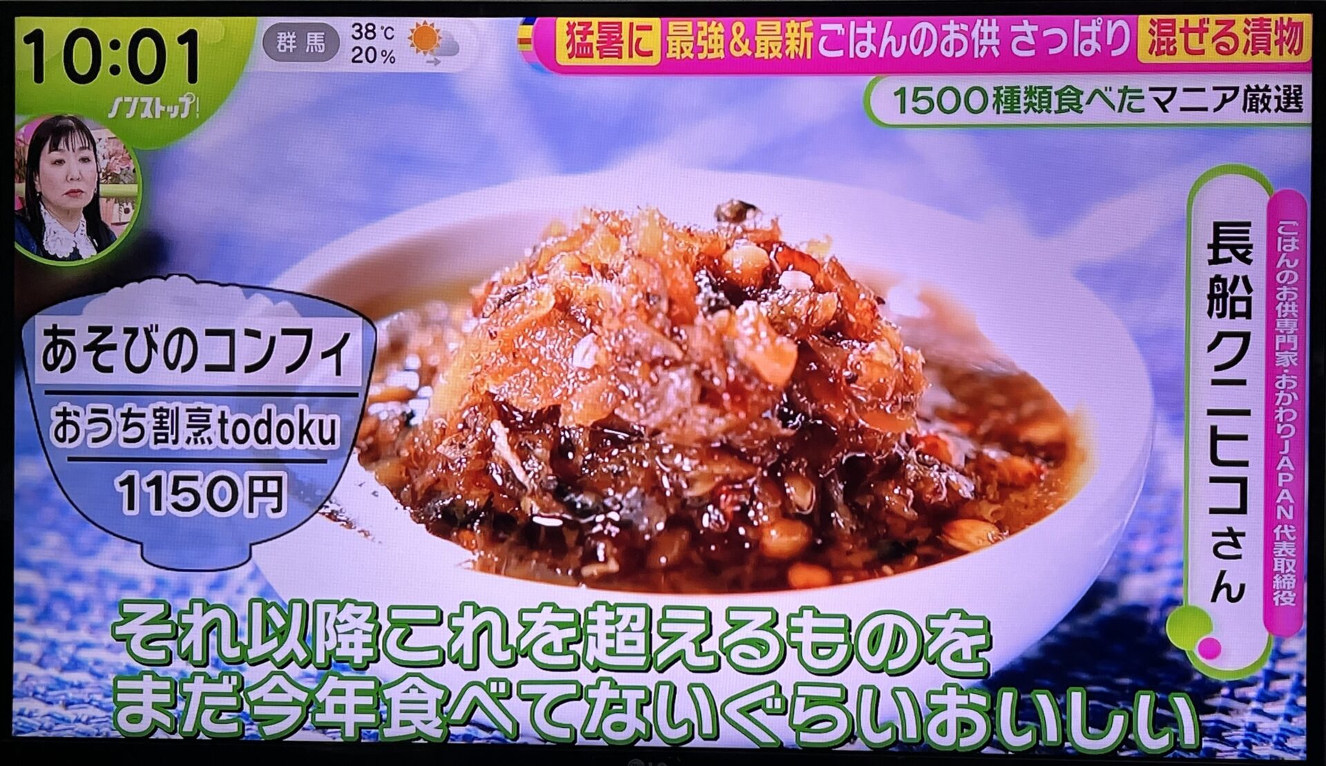 ノンストップさんにて「あそびのコンフィ」が【マニア厳選!白米すすむ最強&最新ごはんのお供】で紹介されました